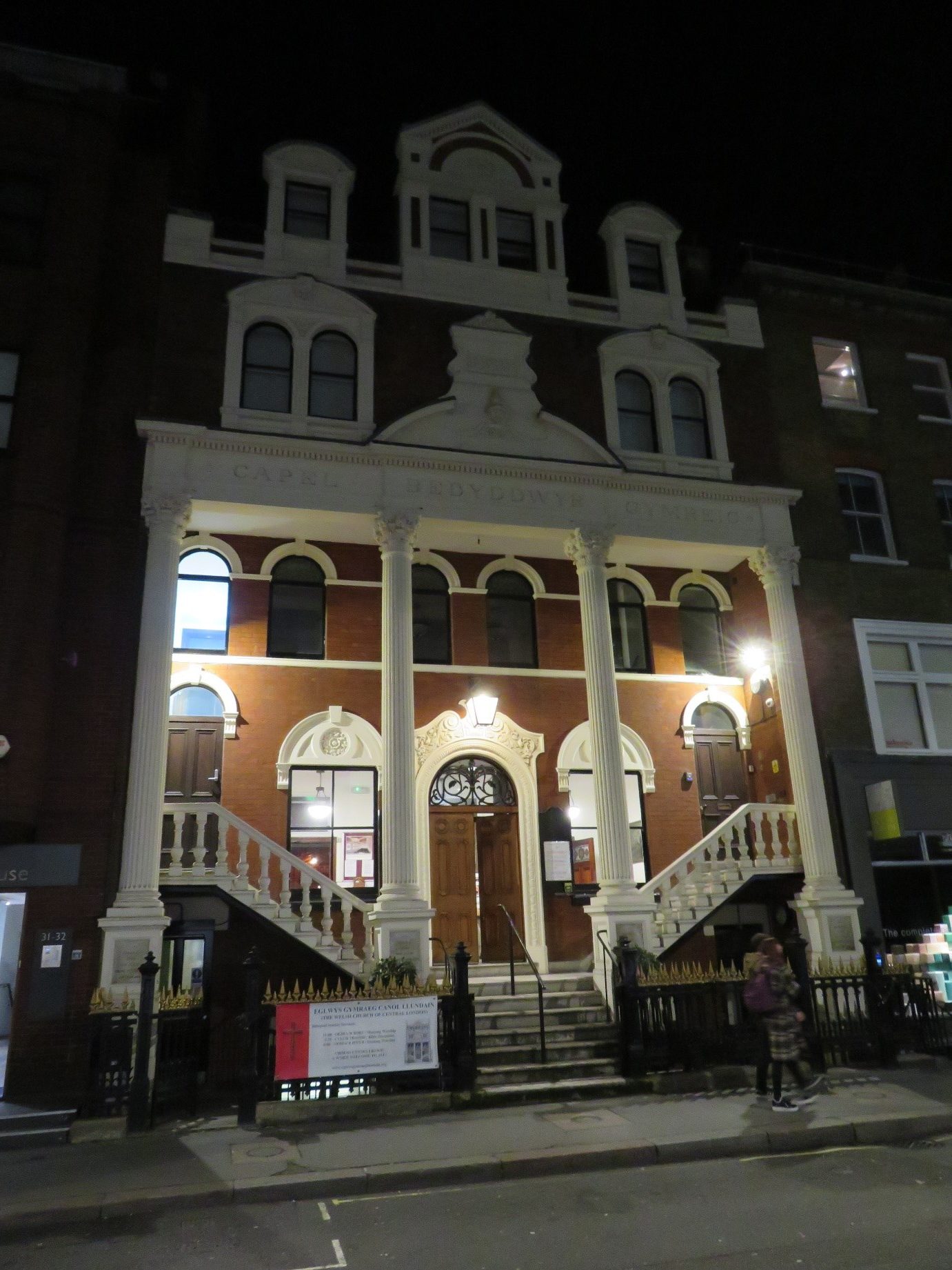 Despite living in London all my life, I am constantly discovering new treasures. One such is the aptly named “Welsh Church of Central London”. Google maps gave the impression that it would be an easy walk from Oxford Circus, and so it proved to be – its distinctive semi-classical façade making it unmistakable on reaching the right general area. Built in the late Victorian era as the Welsh Baptist Chapel, it continues to serve its original function as a centre of worship for Welsh speaking Christians in London.