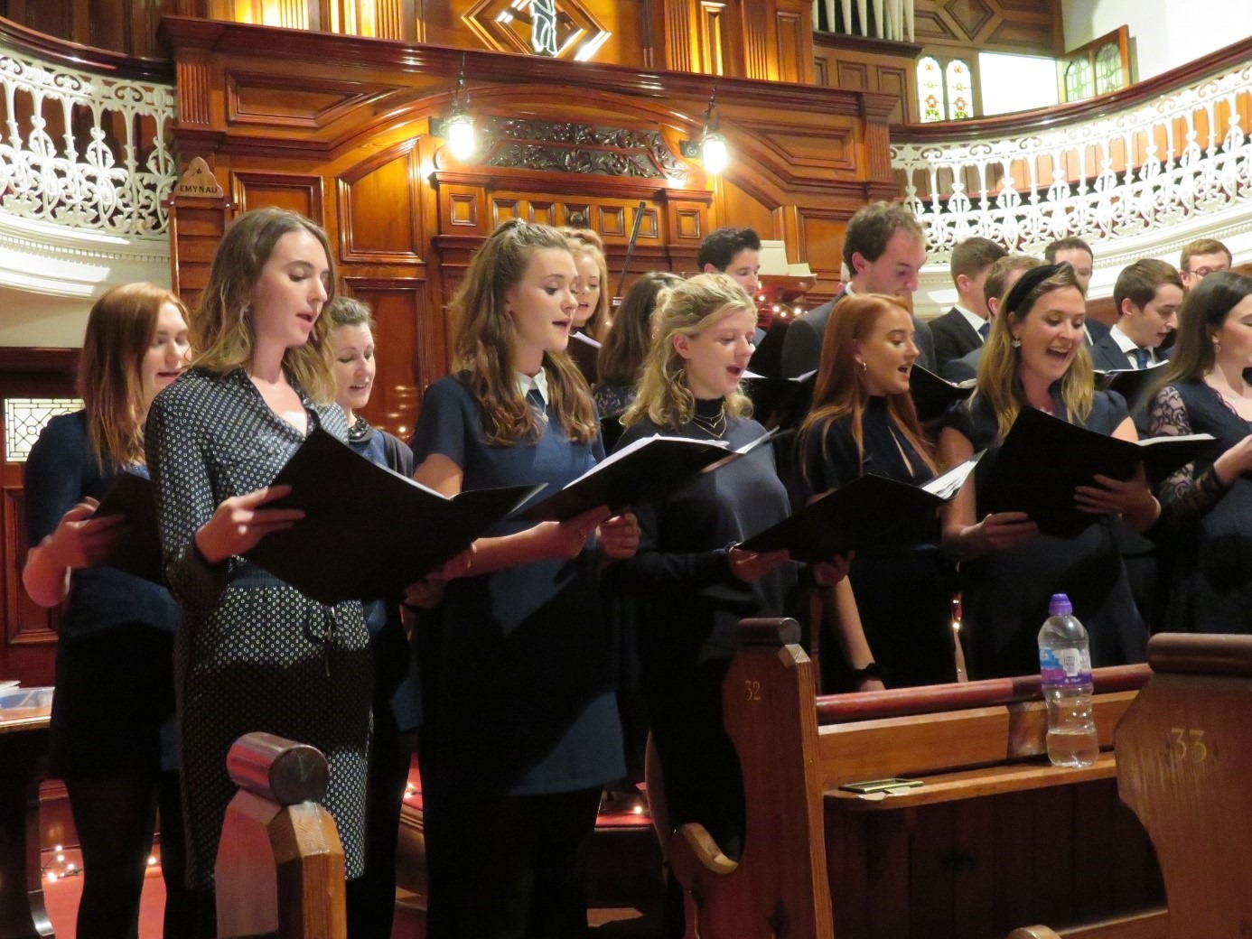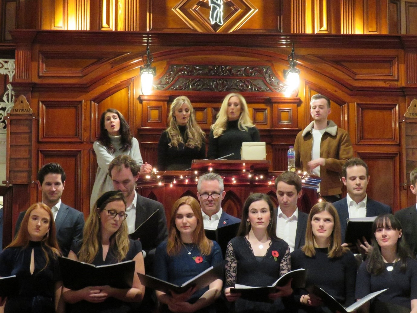 After a while, the choir were joined by three ladies in the high pulpit behind them, who I recognised as Gwawr, Sioned and Ellen from Athena, together with one rather tall young man, all singing a lovely song (in Welsh).