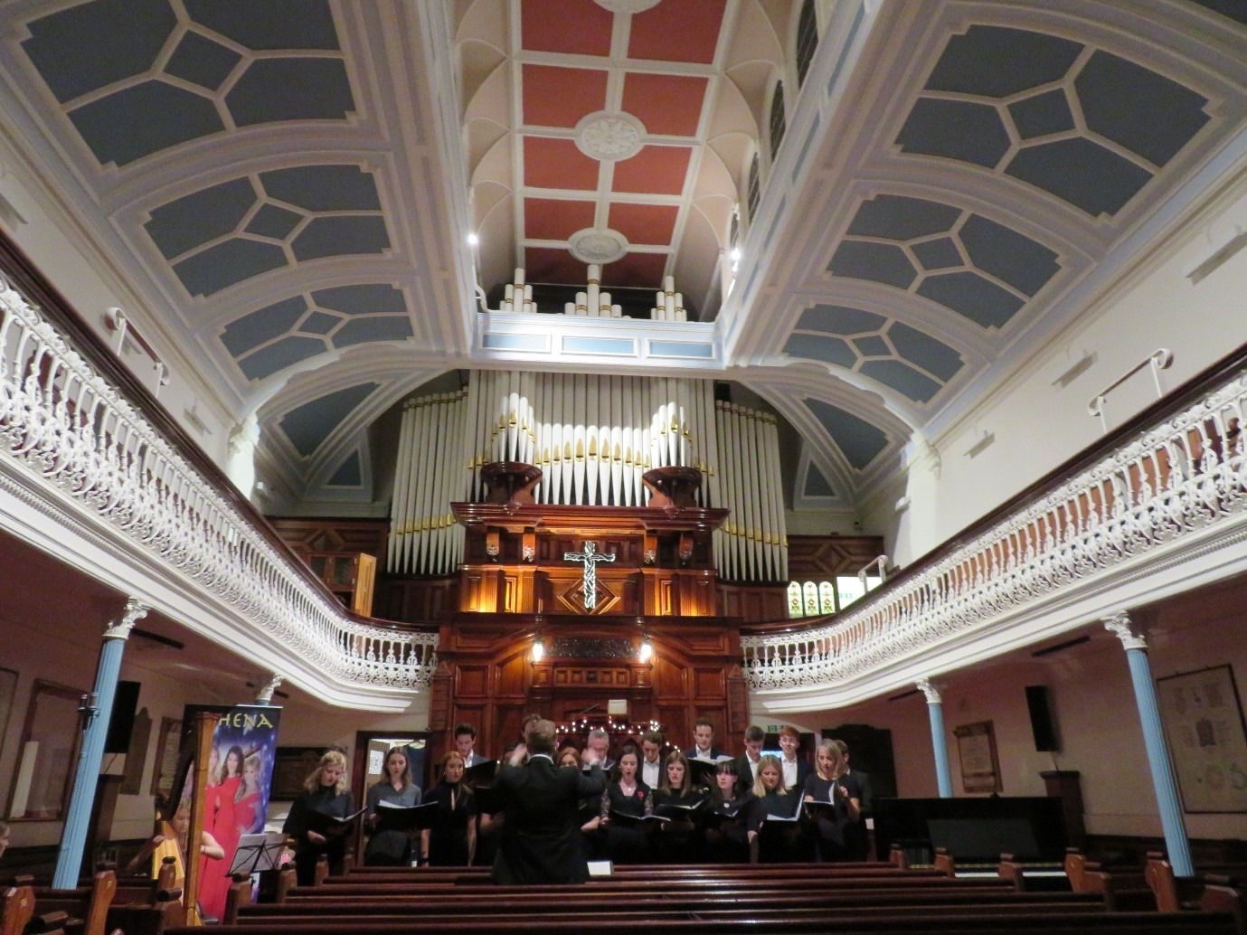 Once the rehearsal was over and it was clear which pews the choir would be occupying, I made my way forward and secured a seat by the side aisle with a reasonable view of the front. I then returned to the entrance to show my ticket, where I also found some copies of Athena’s CD ‘Encore’ on display, ready for that essential purchase.