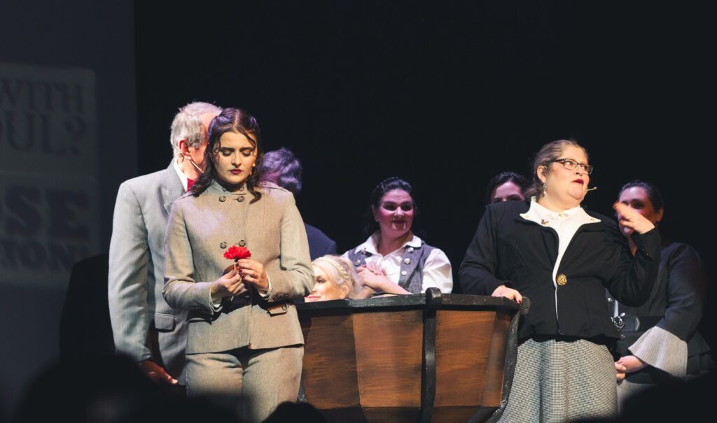 However, the evening’s biggest laughs belonged to Jessica Nivison as Miss Adelaide. More than just comedic flair in Adelaide’s Lament, she infused the role with heart, allowing glimpses beyond the one-liners and New York accent to the character’s underlying vulnerability.